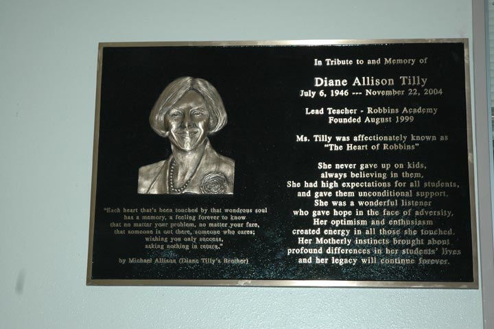 Bronze Plaque in Hallway at Robbins Academy